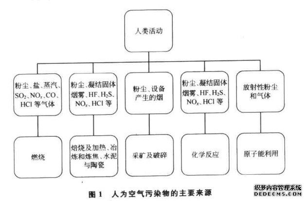 由人類活動產生的空氣污染物的主要來源見圖
