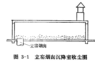 采用沉降室時(shí),通常將它布置在立窯廠房的頂部或旁邊,如圖所示。沉降室的除塵效率除與顆粒本身的重度和直徑有關(guān)外(重度和直徑越大效果越好),還取決于粉塵(或氣體)的流動速度,以及沉降室的橫截面積和長度。氣體在沉降室內(nèi)的流動速度,一般可取0.3-0.5來/秒,停留時(shí)間要求30-60秒。氣流速度越低,沉降室長度越長,則除塵效率越高。但是,由于窯上空間的限制,沉降室的體積不能建得很大。所以,一般沉降室的效率比較低,僅能沉降0.2毫來以上的粗顆粒。