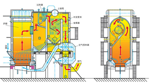 (4)設(shè)計(jì)時(shí)還應(yīng)充分考慮分離器布置與整個(gè)系統(tǒng)相結(jié)合,如應(yīng)用于流化床鍋爐中時(shí),可考慮在分離器下部采用細(xì)灰流化床方式。
