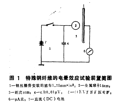 濾料中的特殊鋼纖維不僅向?yàn)V袋表面的塵塊放電,還平衡了離濾袋較遠(yuǎn)距離的靜電負(fù)荷,這點(diǎn)已經(jīng)在模擬試驗(yàn)中得到證實(shí)(_見圖I, 2 ).試驗(yàn)濾袋旁邊設(shè)置了一個(gè)金屬球,為了模擬運(yùn)行實(shí)際狀態(tài),濾料固定在焊接的金屬網(wǎng)上.金屬球體與濾料的距離為4 cm.如果關(guān)閉開關(guān)S,那么電容就會(huì)由0.01uV增為直流高壓,在關(guān)閉了的開關(guān)S和30KV的電源上.