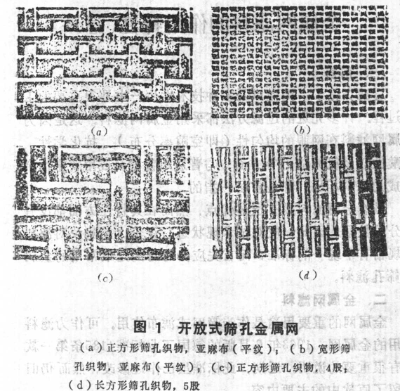 德國工業(yè)標(biāo)準(zhǔn)4185條和以前的公開發(fā)行物中,都曾介緒過這些篩孔織物的特性及制作情況。